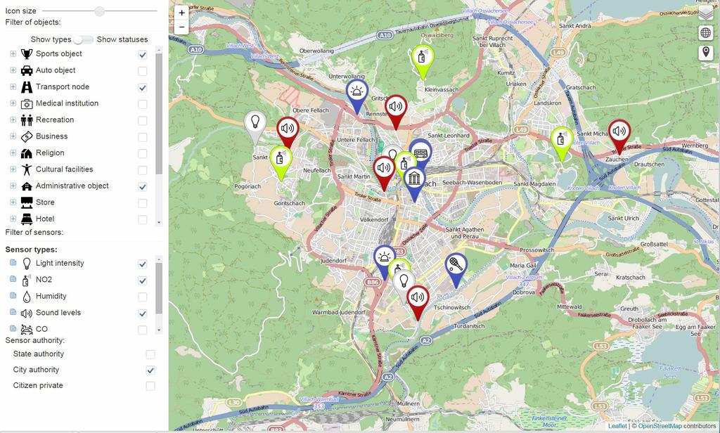 The urban objects can be defined and placed on the City Map of Life by the city administration (or more precisely it’s Smart City Team). Alternatively objects owners may be authorized by the city administration to manage the information provided to the City Map of Live for their object by themselves (e.g. shops, restaurants, parking places, banks, bankomats, sport facilities, transportation nodes, etc).
